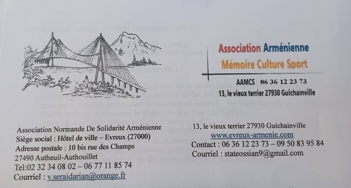 A l’occasion de la Journée Nationale du 24 avril, les deux associations franco-arméniennes normandes ANSA et AAMCS ont l’honneur de vous convier à la cérémonie du 110 ème anniversaire de commémoration du génocide des Arméniens, en présence des Porte-drapeaux de la section du Souvenir Francais et des médaillés militaires des Andelys, sous la responsabilité du Major Honoraire de la Gendarmerie, Christian Dubois.